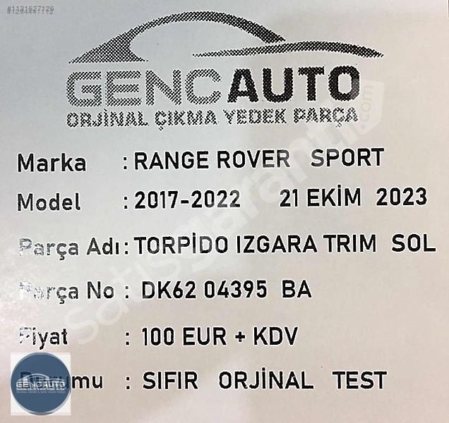 RANGE ROVER SPORT TORPİDO IZGARA TRIM SET SIFIR ORJ DK6204395 BA