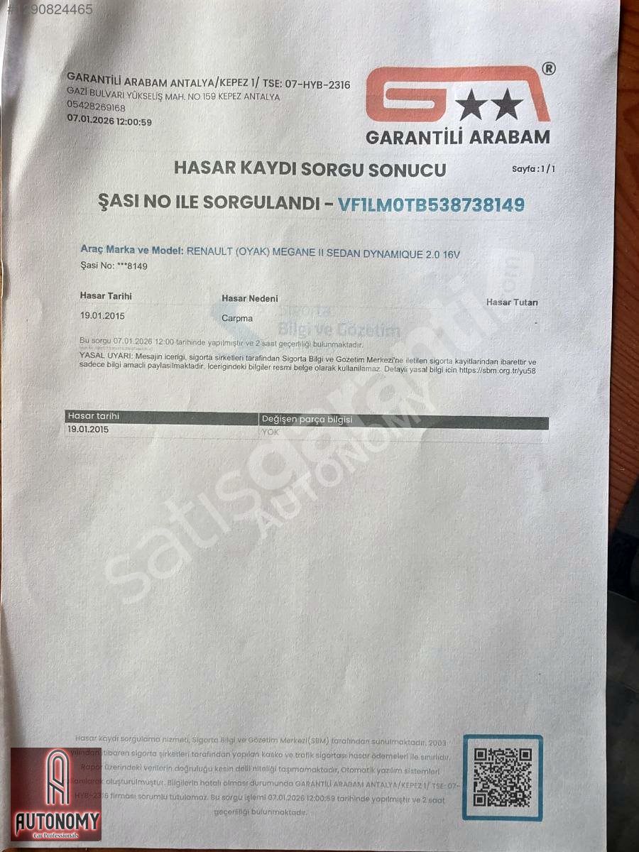 | Ağır Hasar Kayıtlı | Hayır |