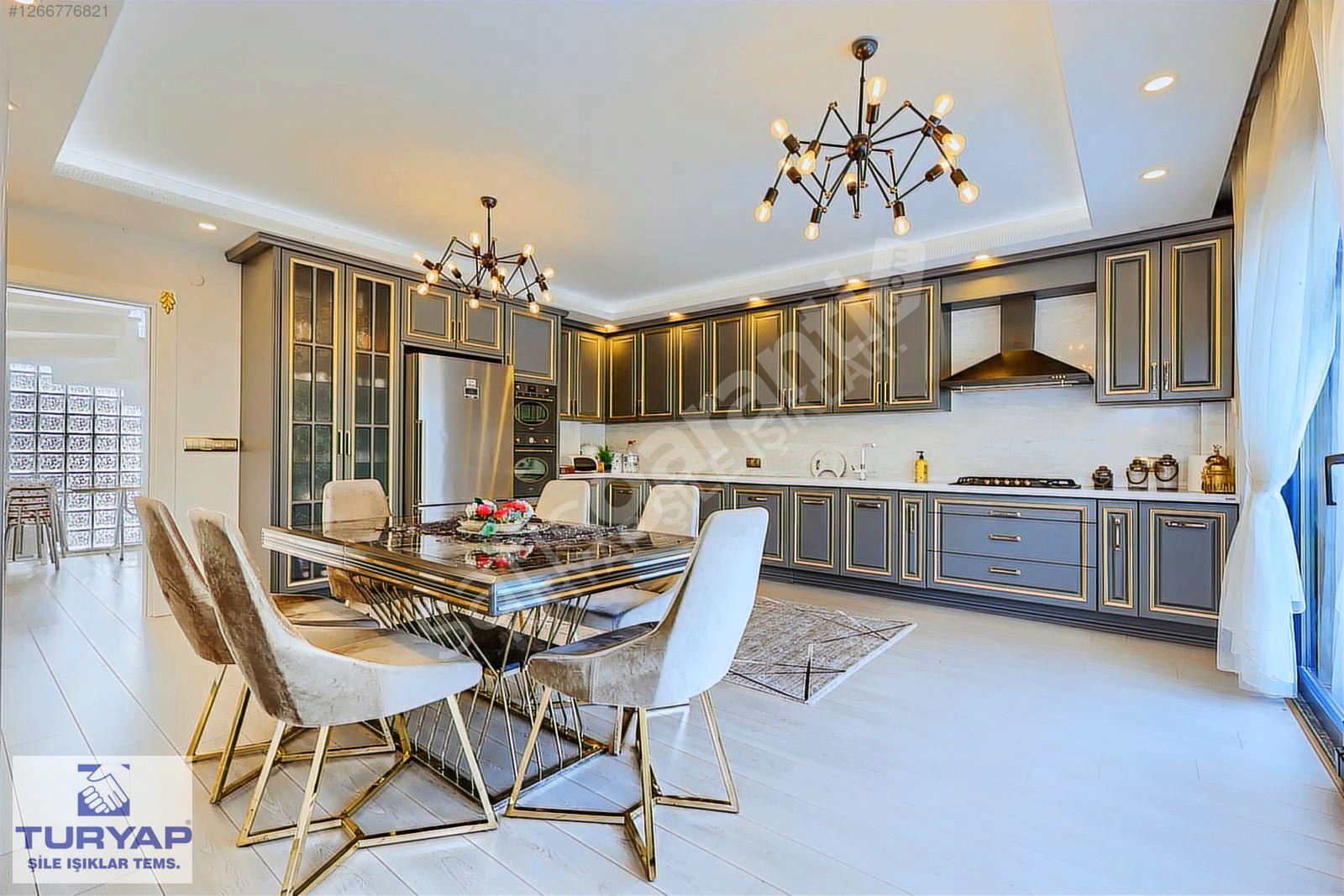 Mutfak özel yapım olup dolaplarının kapakları lake birinci sınıftır. Tüm ankastreler franke markadır. Mutfak mermeri tezgahı franke marka özel yapım maksimum hijyen ve kolay temizlenebilirdir.