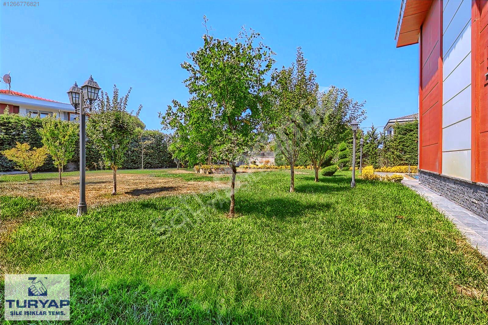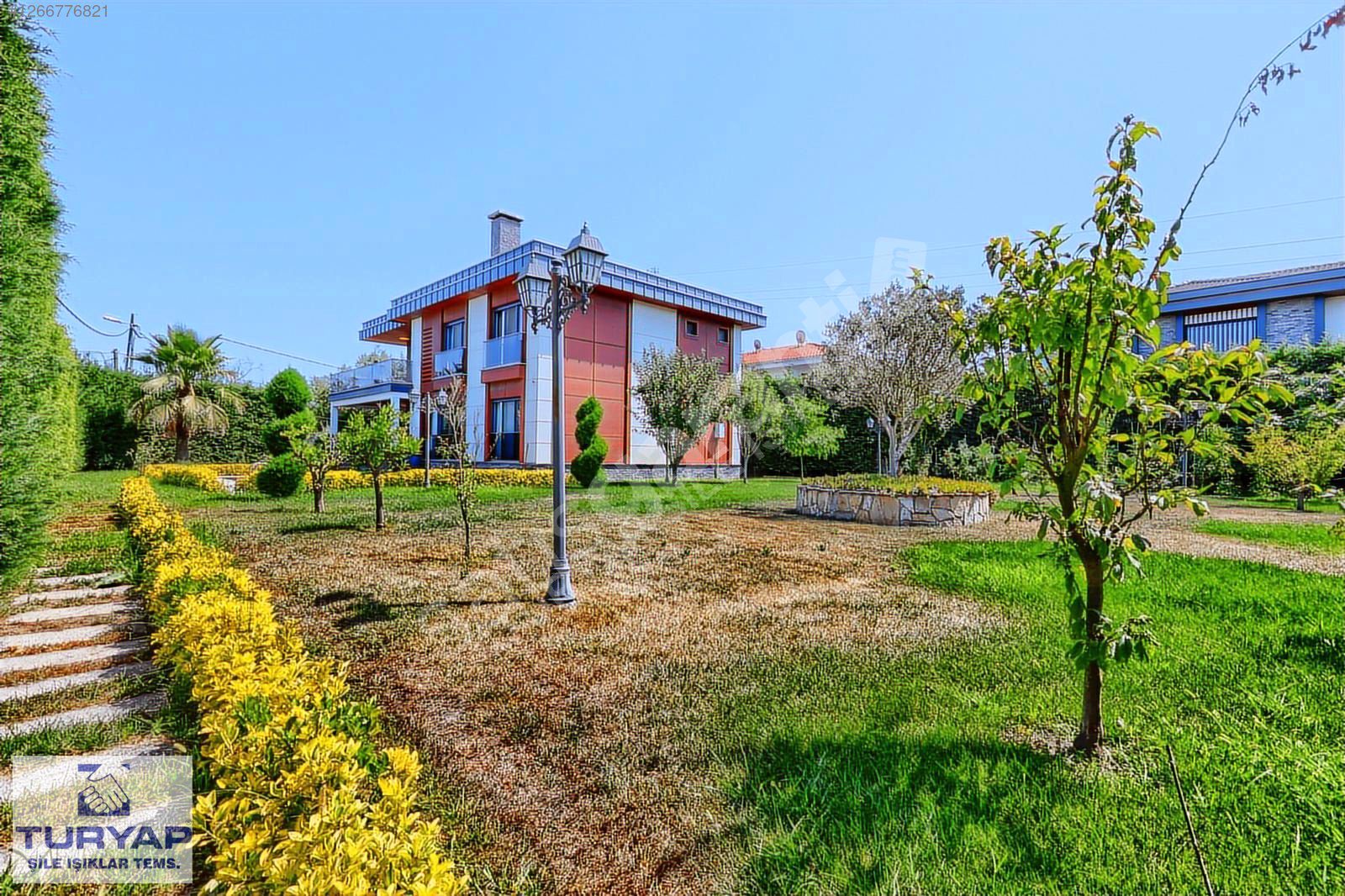 Bahçe peyzajı yapılmış otomotik sulama mevcuttur. Güvenlik kamera sistemi ve alarm sistemi bulunmaktadır.