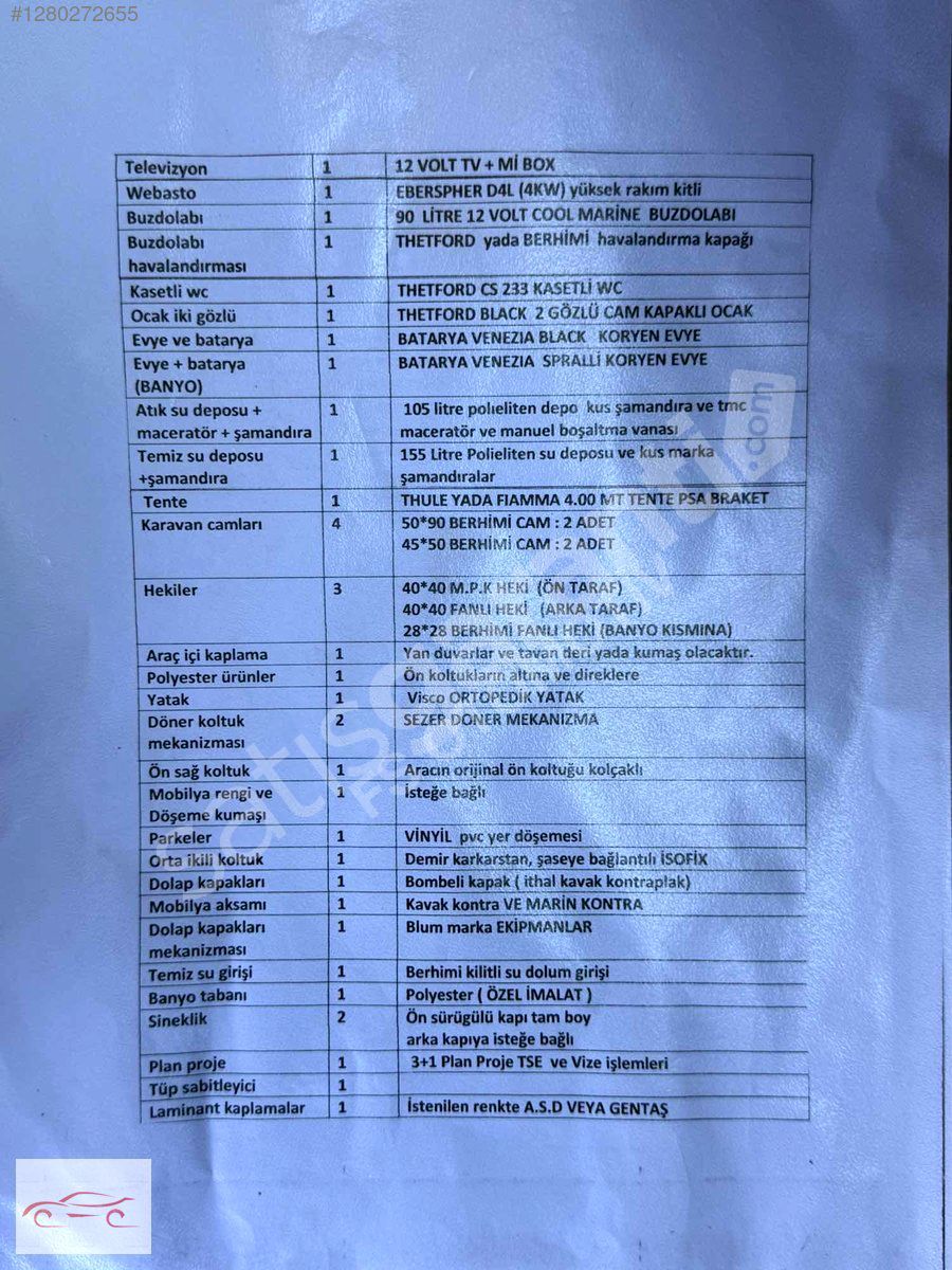 SON İKİ FOTOĞRAFLARDA KARAVANIMIZIN TEKNİK ÖZELİKKLERİ VE KULANILAN MAZEMELERİN DETAYLI LİSTESİ MEVCUTTUR DETAYLI İNCELEYE BİLİRSİNİZ..