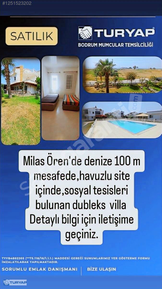 Ören'de, 52 haneden oluşan site içerisinde bulunan villa deniz manzarası ile dikkat çekmektedir.Denize 100 m mesafede,içinde havuzu ve sosyal tesisleri(basketbol ve futbol sahası, çocuk parkı,cafe) bulunmaktadır.Siteye ait otopark mevcuttur.