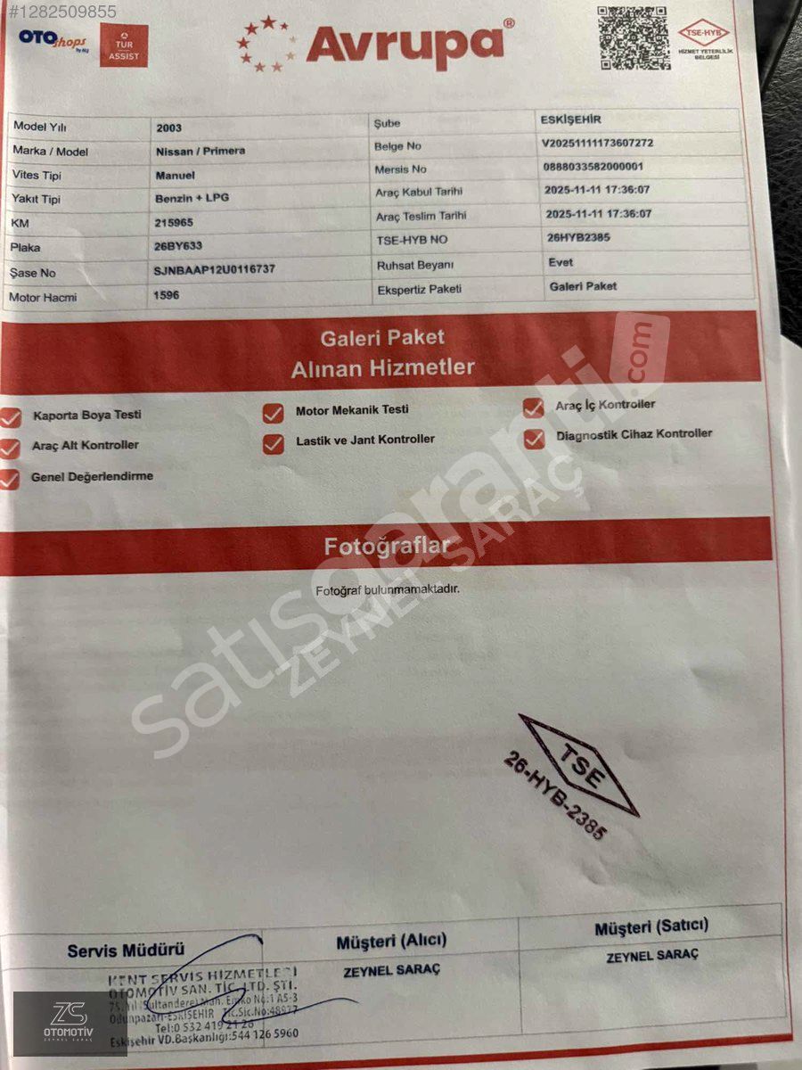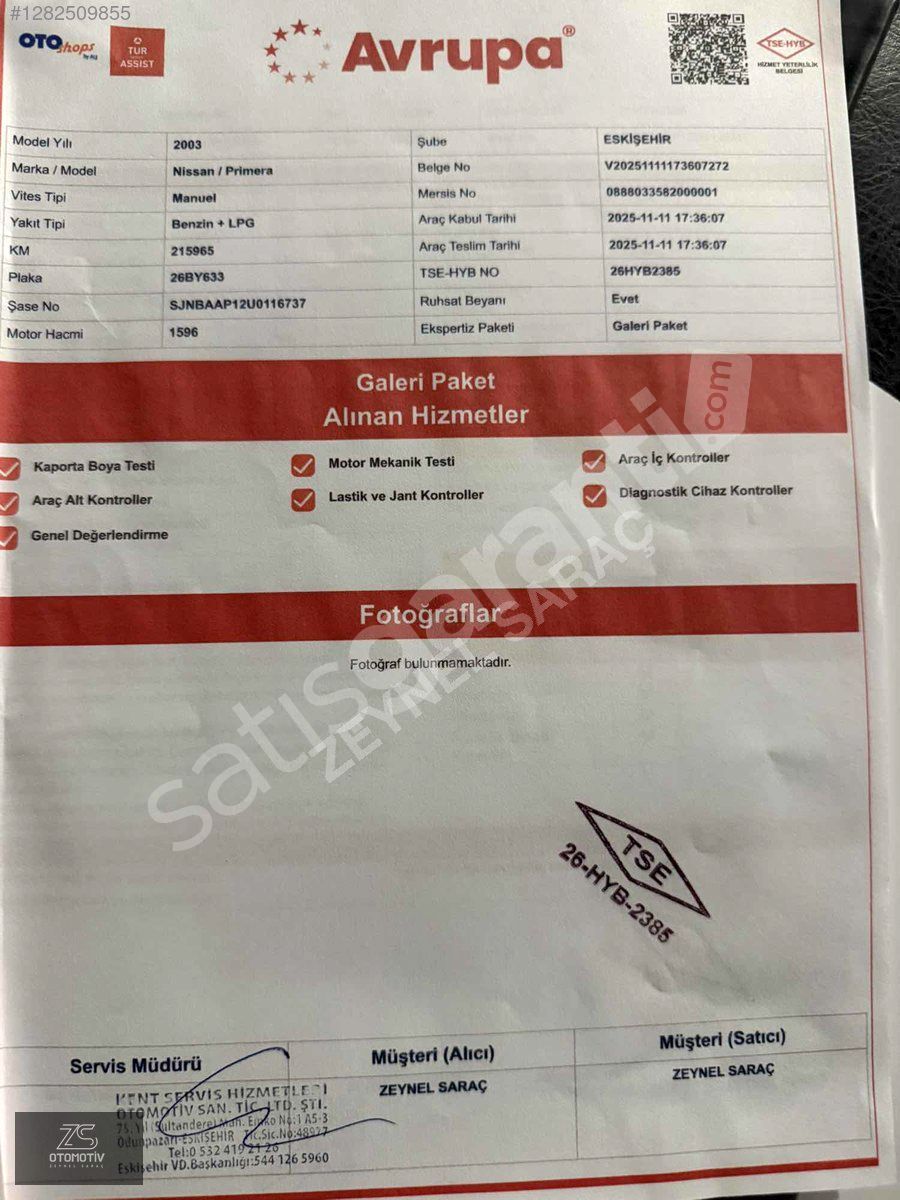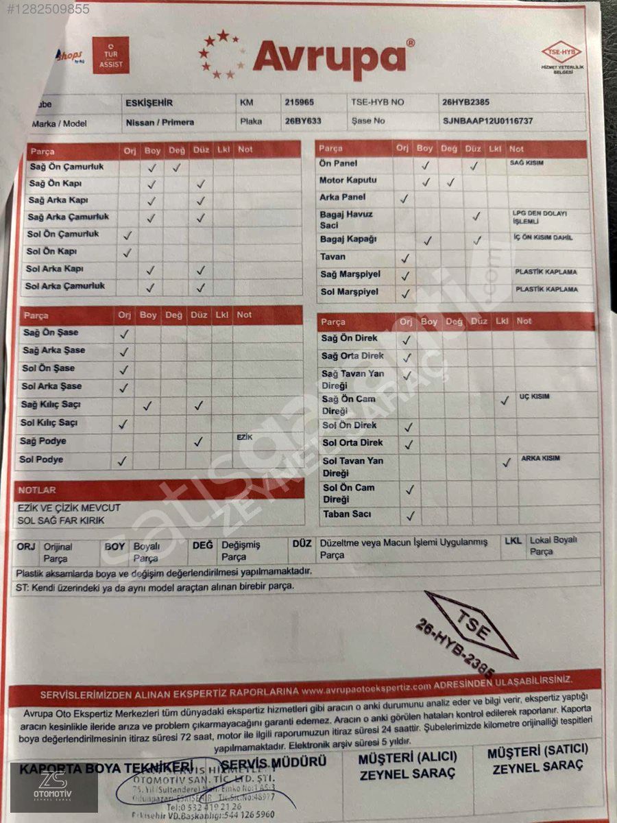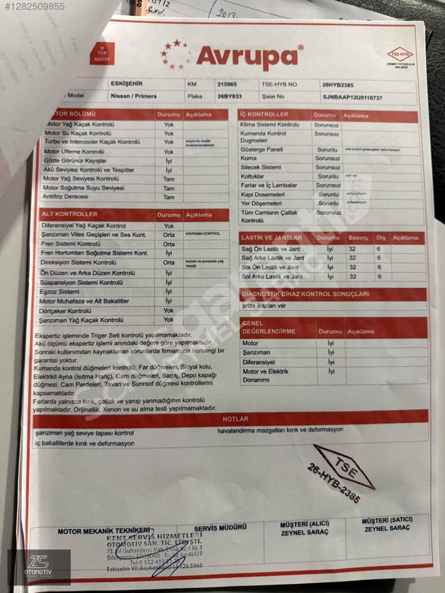 | Plaka / Uyruk | Türkiye (TR) Plakalı |
