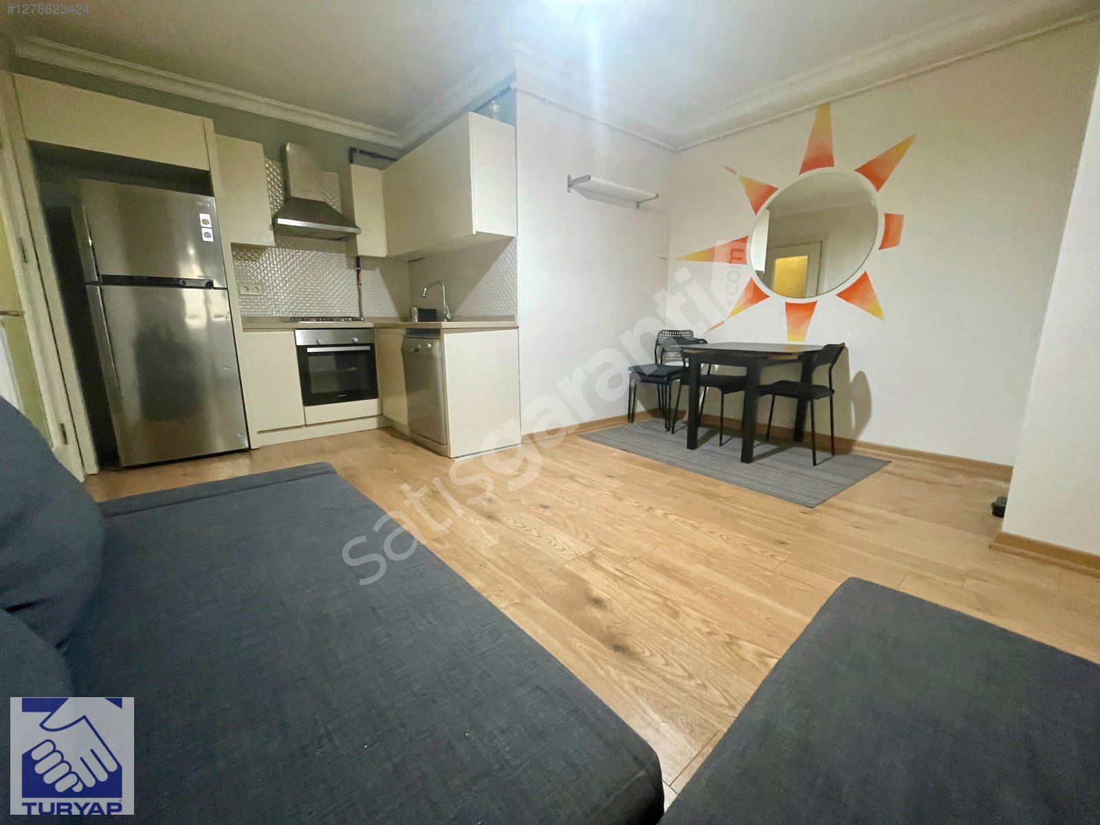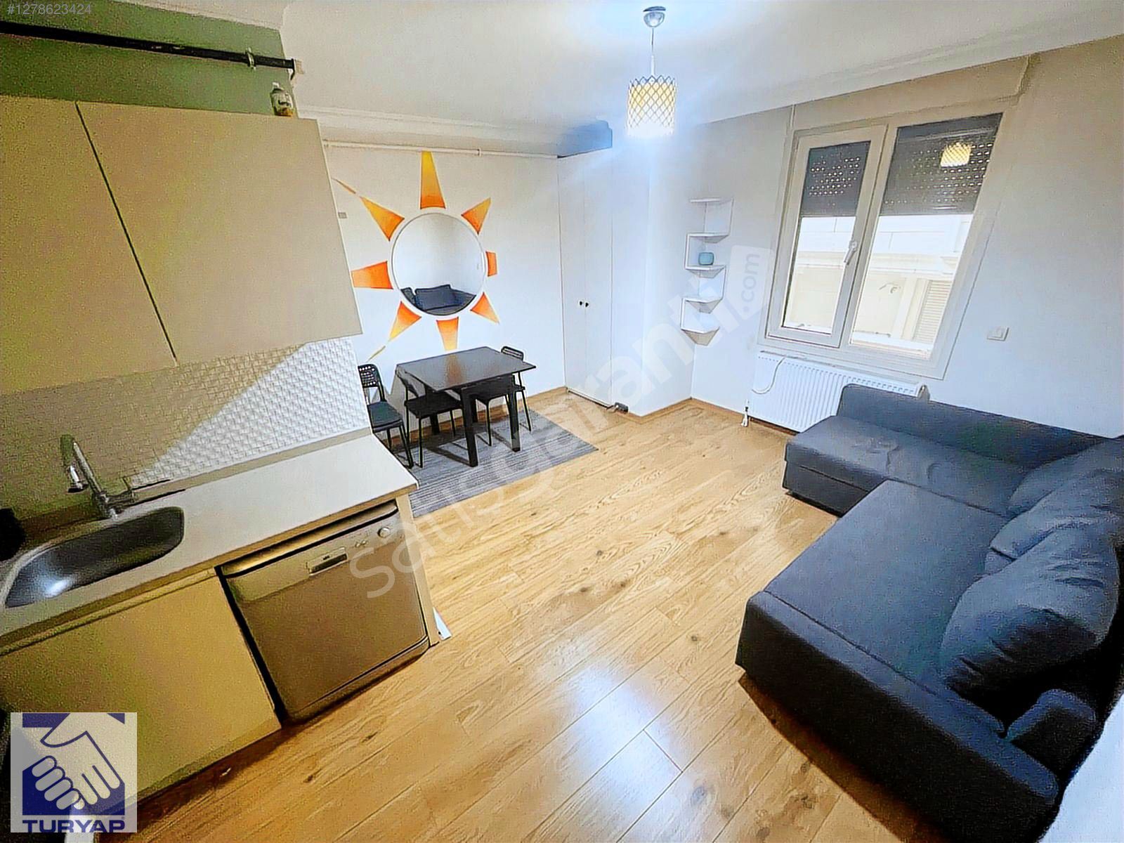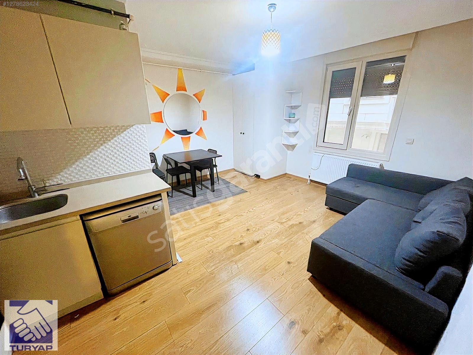 SALONDA L TİPİ BAZALI KOLTUK, ANKASTRE SET,ÇAMAŞIR MAKİNASI, BUZDOLABI, YEMEK MASASI VE BULAŞIK MAKİNASI