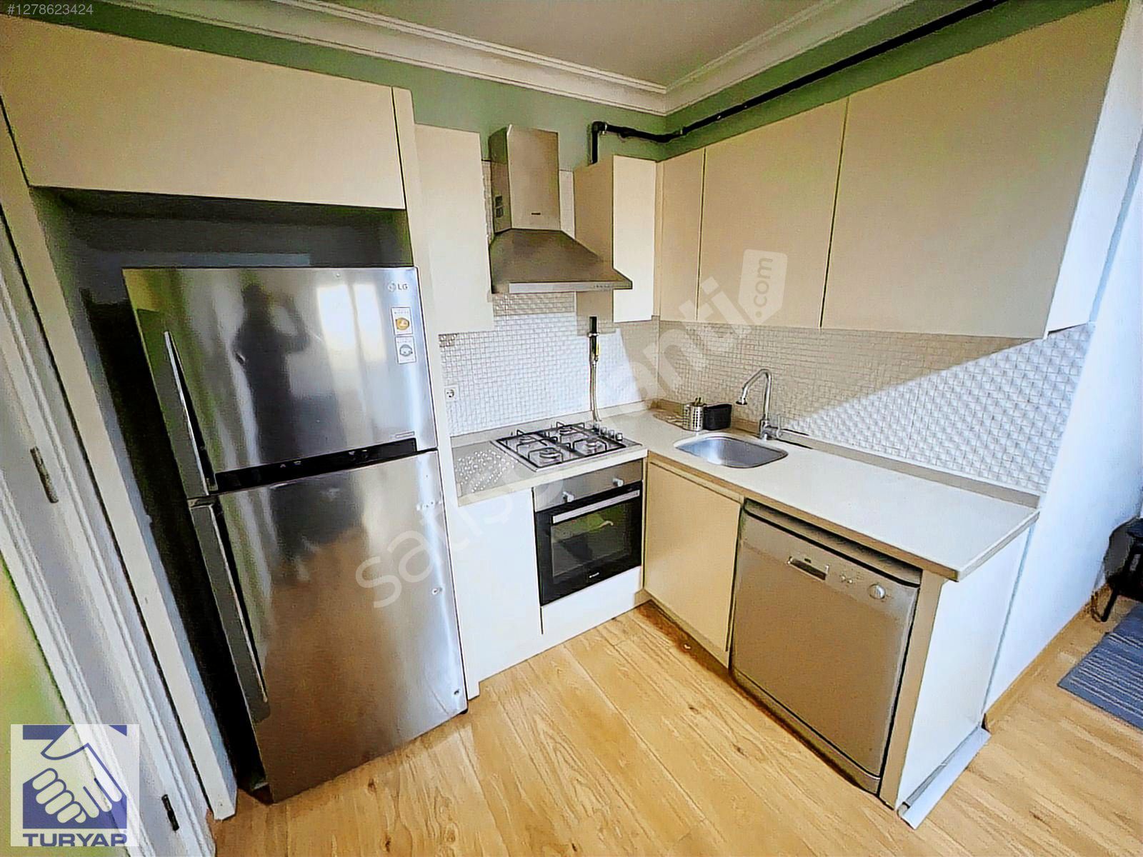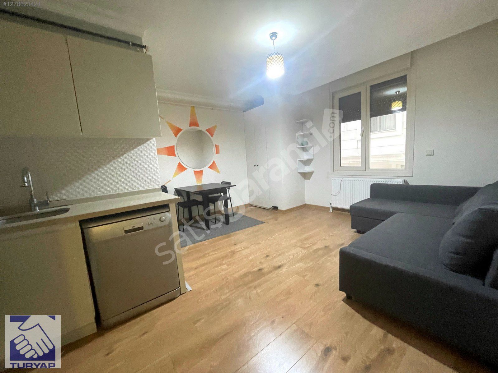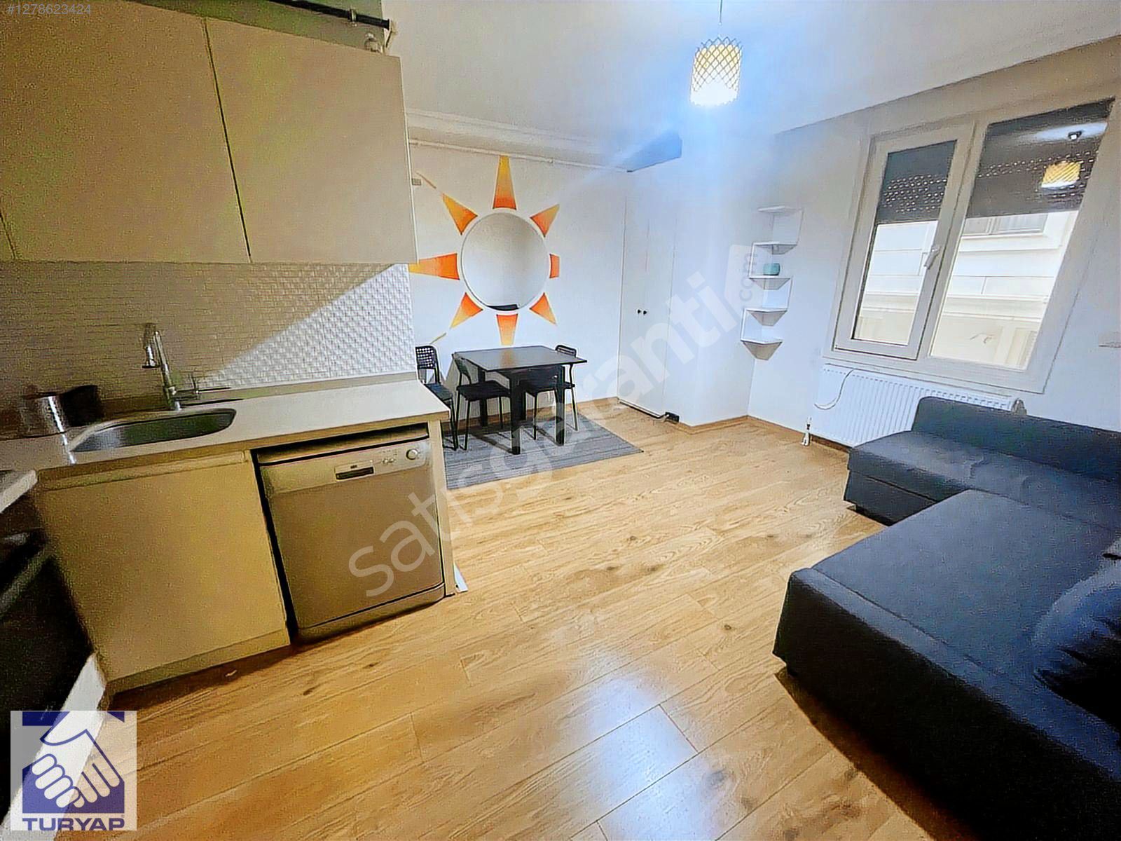 SALONDA L TİPİ BAZALI KOLTUK, ANKASTRE SET,ÇAMAŞIR MAKİNASI, BUZDOLABI, YEMEK MASASI VE BULAŞIK MAKİNASI