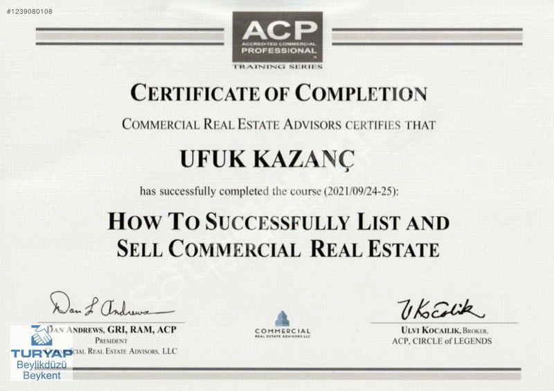 Taşınmaz Ticareti Yetki Belgesi No:3401184