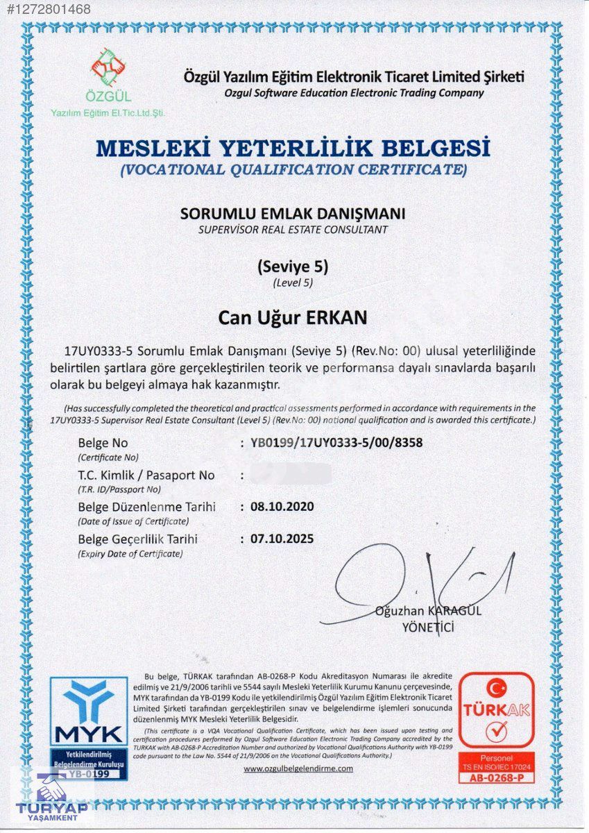 BU GAYRİMENKULÜN PAZARLANMASINDA TEK YETKİLİ TURYAP 'YAŞAMKENT' TEMSİLCİLİĞİDİR.