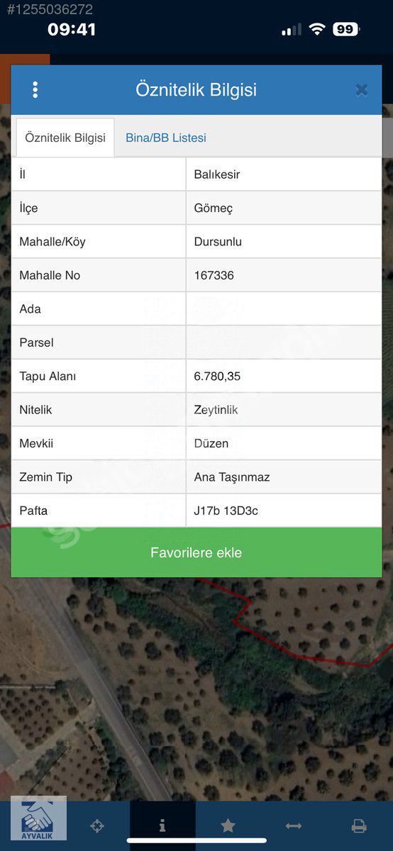 - İçerisinde 94 adet bakımlı Ayvalık yağlık zeytin ağacı mevcuttur,