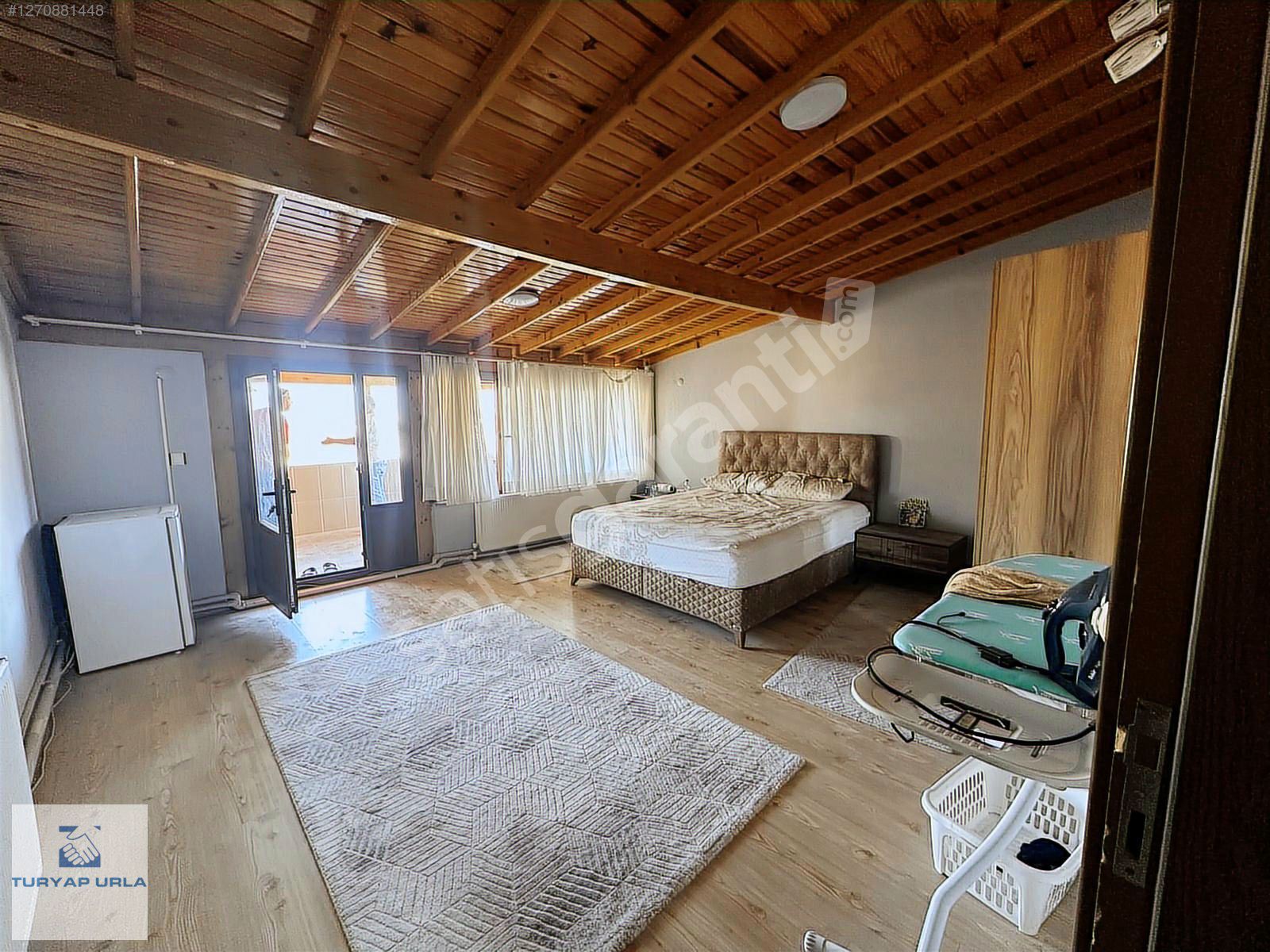 Üst kattaki büyük odamız, salon genişliğindedir ve önündeki balkon teras olarak kullanılmaktadır.