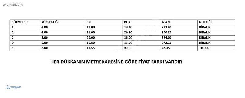 NOT: HER DÜKKAN AİT 200 M2 AÇIK ALANA SAHİPTİR