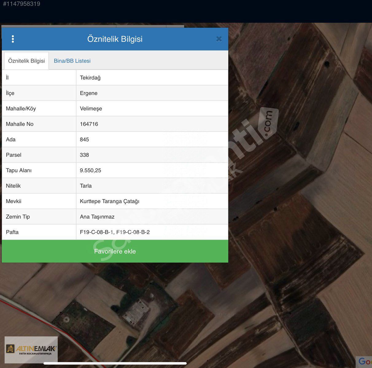 ARSAMIZ TEKİRDAĞ ERGENE VELİMEŞE DE 9.550 M2 DİR.