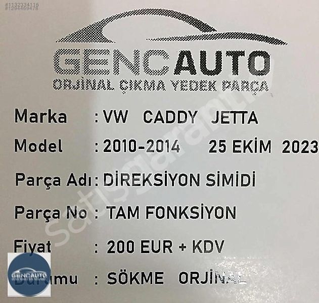 | Çıkma Yedek Parça | Evet |