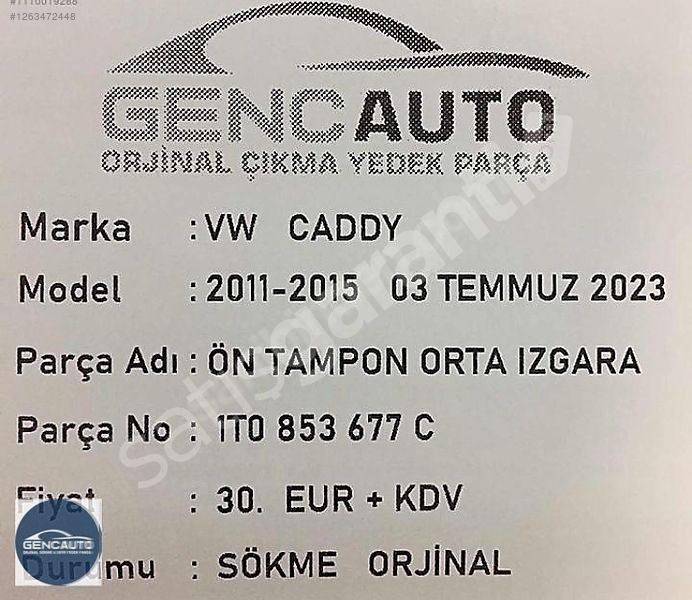 | Çıkma Yedek Parça | Evet |