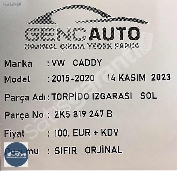 | Çıkma Yedek Parça | Hayır |