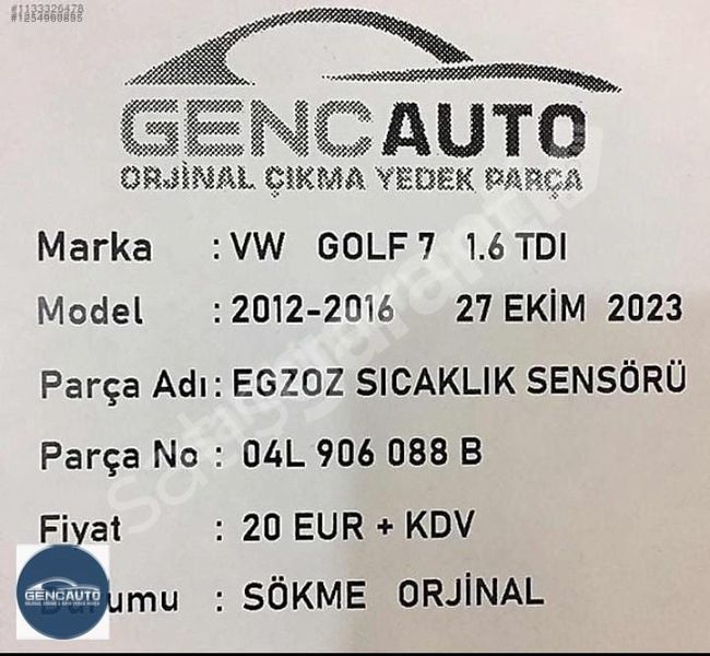 | Ürün | Egzoz Gazı Sıcaklık Sensörü |