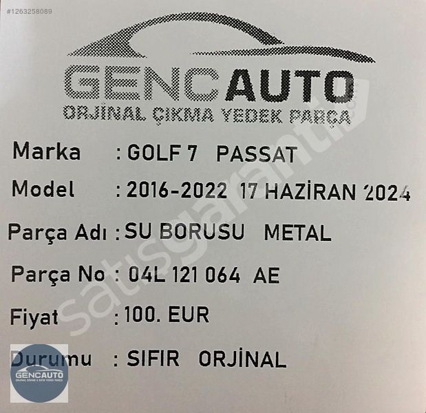| Çıkma Yedek Parça | Hayır |