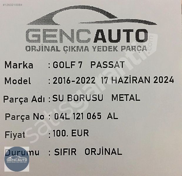 | Çıkma Yedek Parça | Hayır |