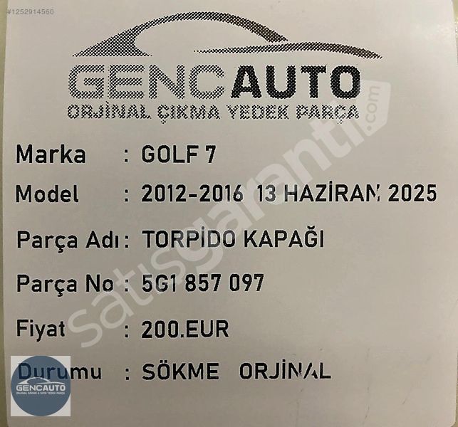 | Çıkma Yedek Parça | Evet |
