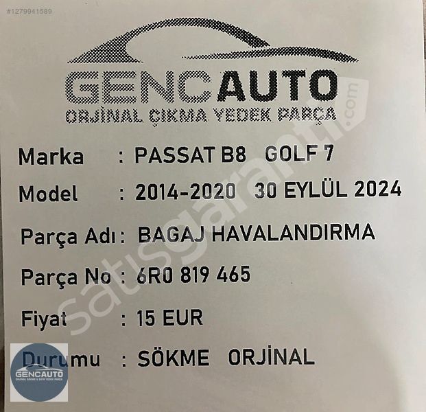 | Çıkma Yedek Parça | Evet |
