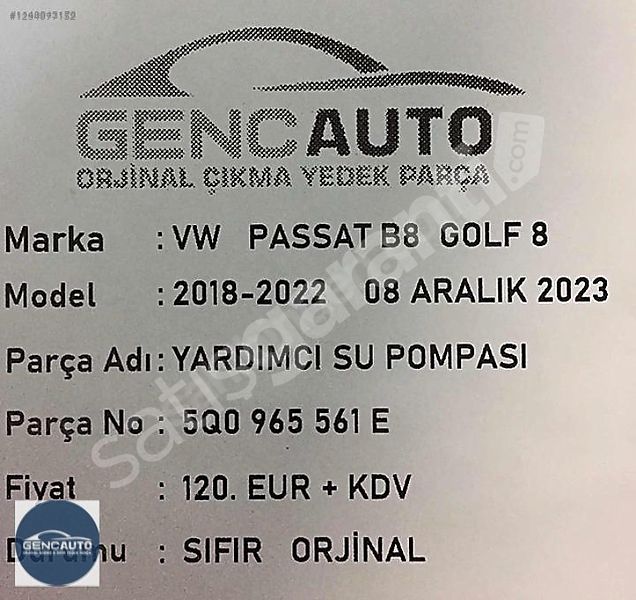 | Çıkma Yedek Parça | Evet |