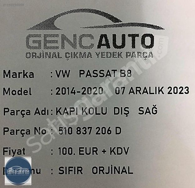 | Çıkma Yedek Parça | Hayır |