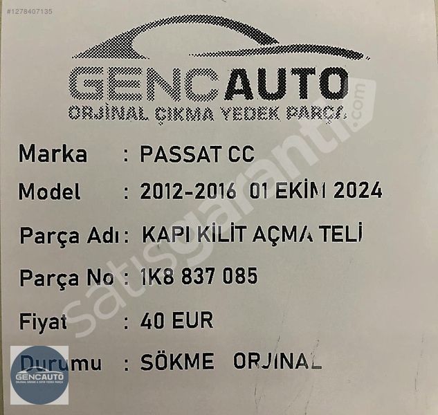 | Çıkma Yedek Parça | Evet |