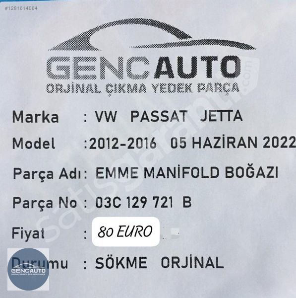 | Çıkma Yedek Parça | Evet |