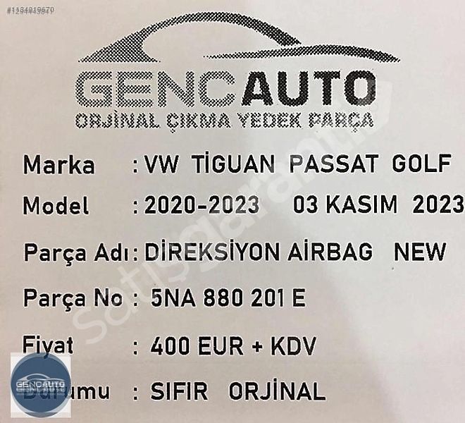 | Çıkma Yedek Parça | Hayır |