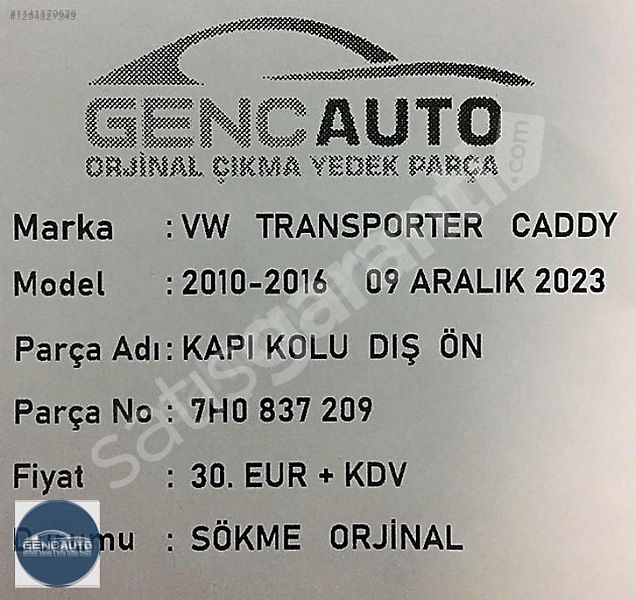 | Çıkma Yedek Parça | Evet |