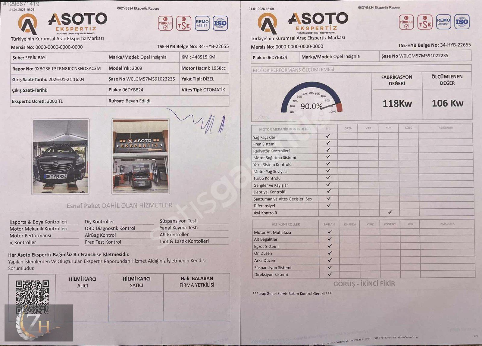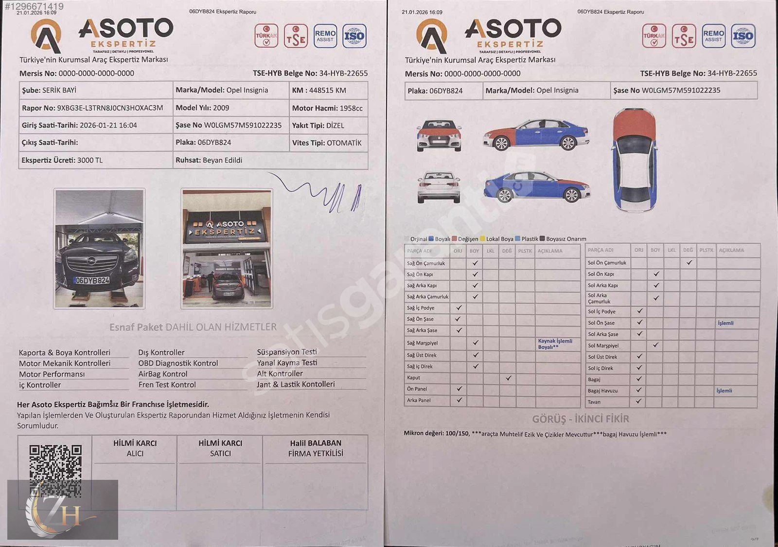 EXPERTİZ BİLGİLERİ = ARACIMIZDA 2 PARÇA DEĞİŞEN