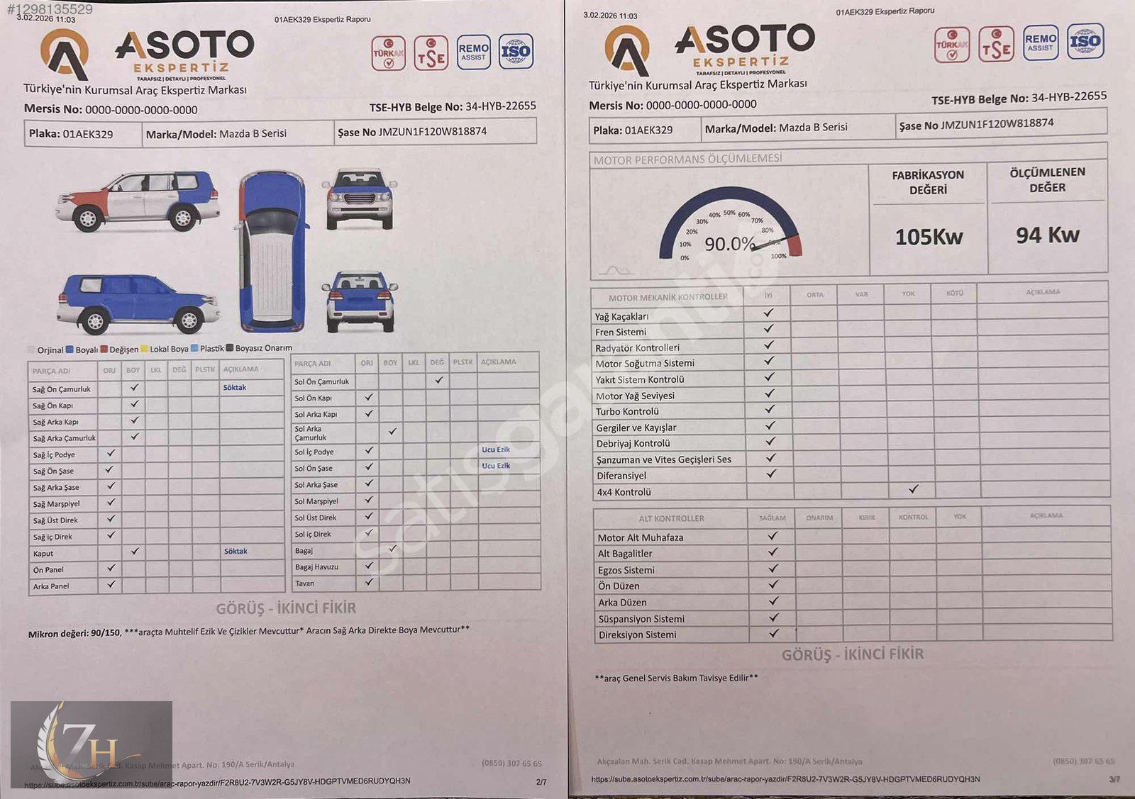 EXPERTİZ BİLGİLERİ = ARACIMIZDA 1 PARÇA DEĞİŞEN