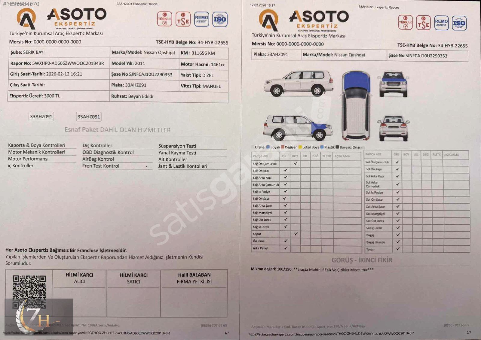 EXPERTİZ BİLGİLERİ = ARACIMIZDA DEĞİŞEN OLMAYIP
