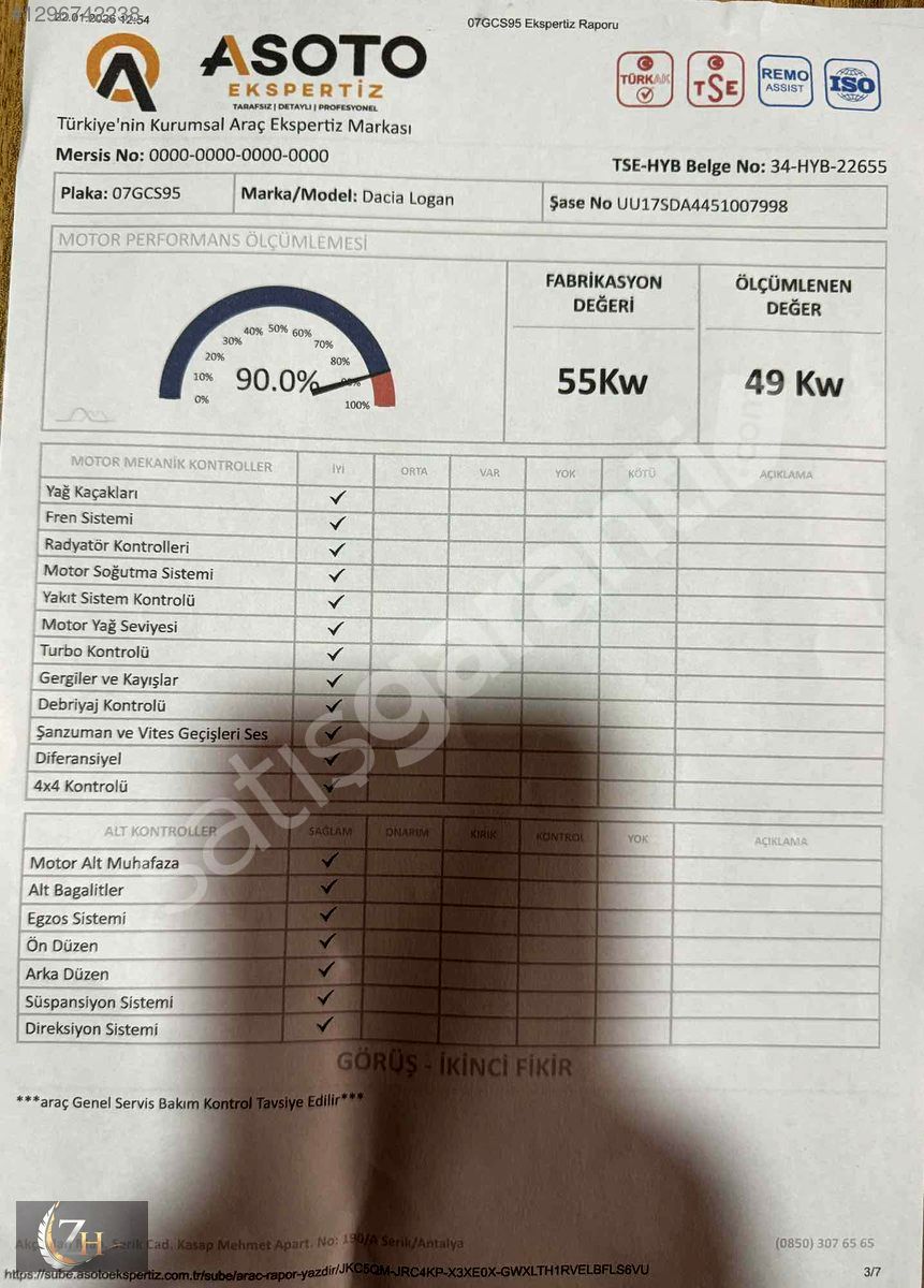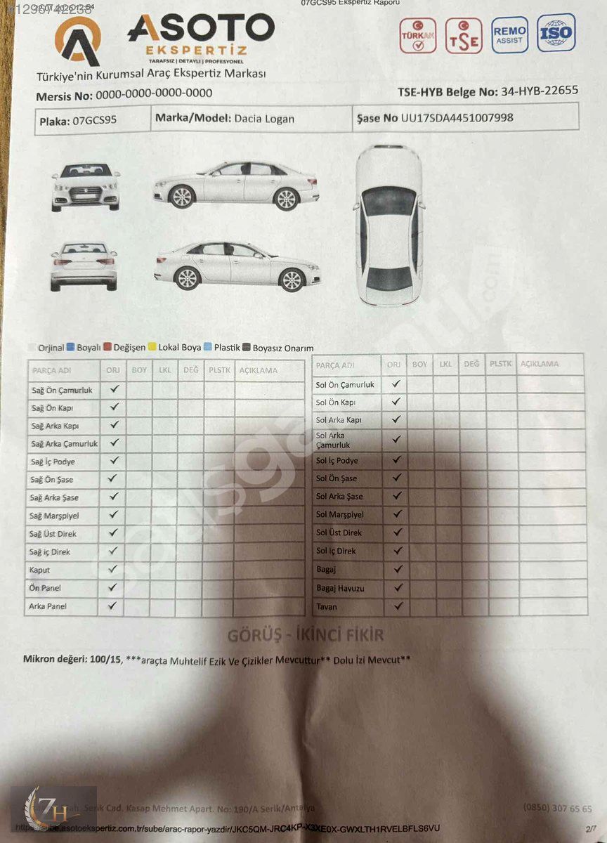EXPERTİZ BİLGİLERİ = ARACIMIZDA HATA BOYA YOKTUR