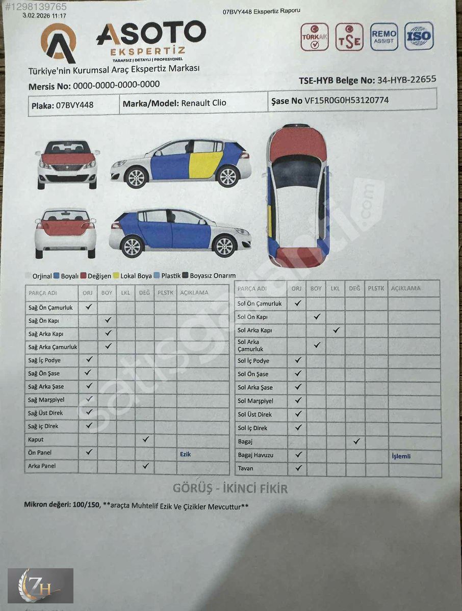 EXPERTİZ BİLGİLERİ = ARACIMIZDA DEĞİŞEN 2 PARÇA
