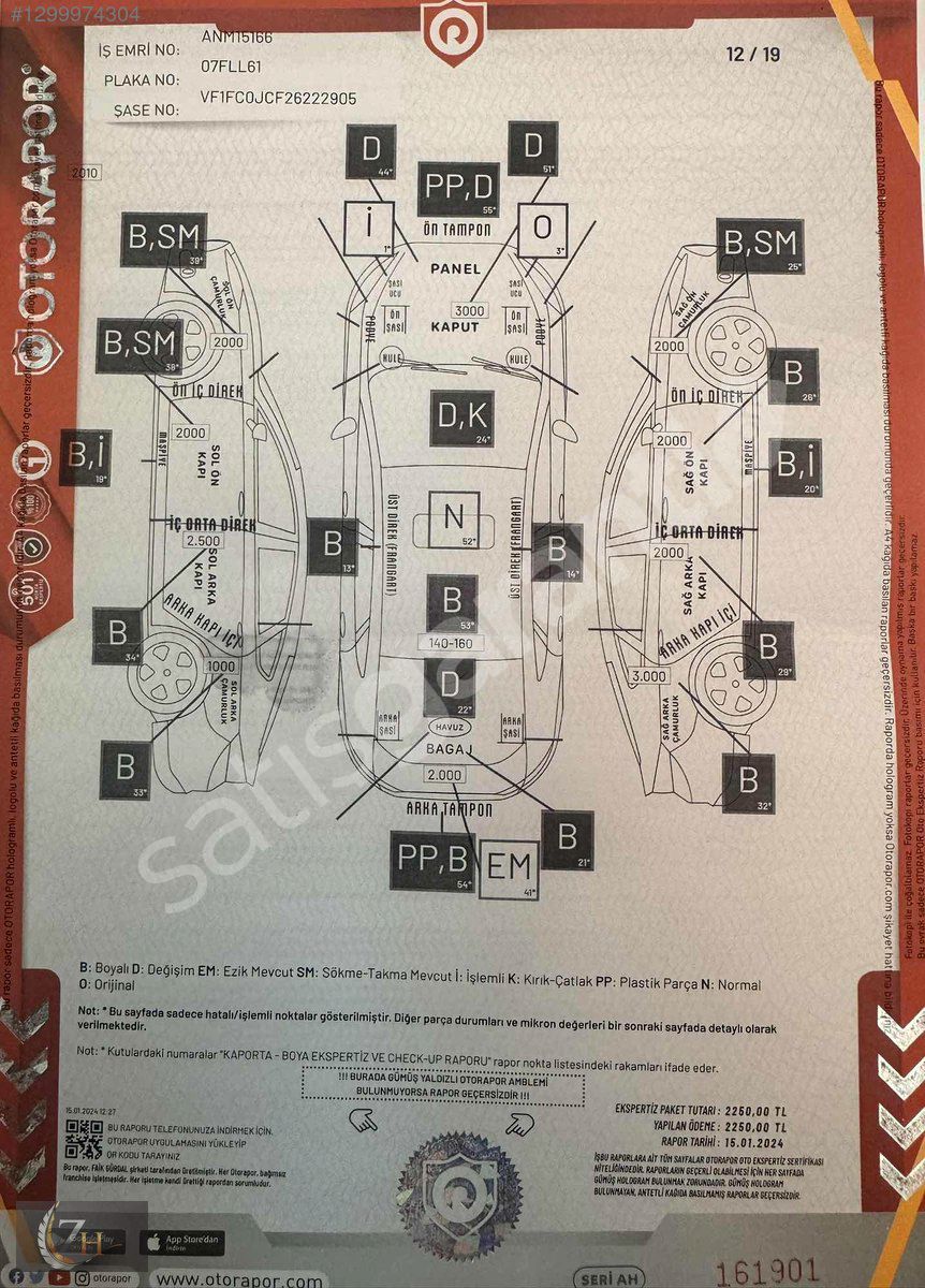 EXPERTİZ BİLGİLERİ = ARACIMIZDA 2 PARÇA DEĞİŞEN